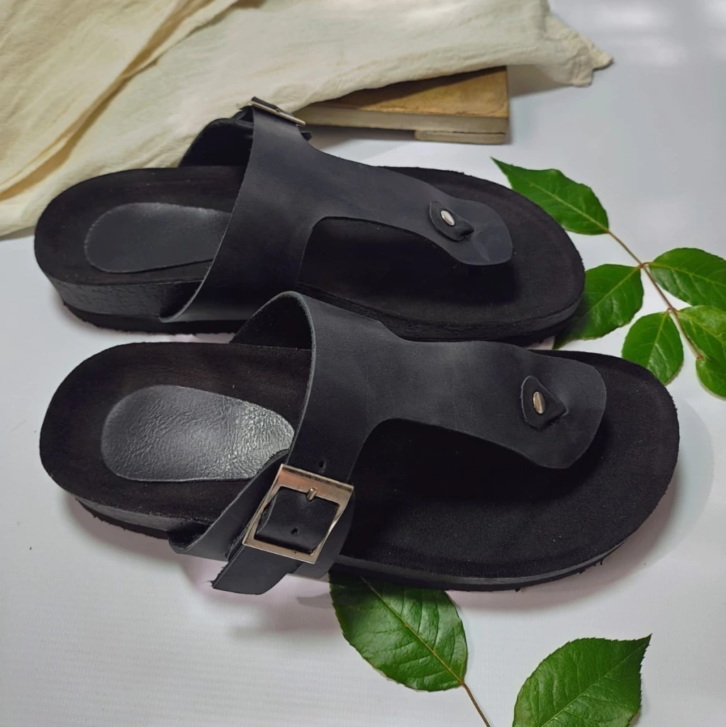 Cómoda con nuestras OJOTAS BIRK DE 100% cuero.